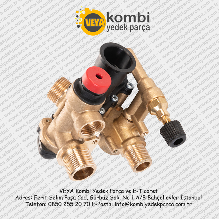 Demirdöküm Kalisto modelinde kullanılmakta olan standart kombi 3 yollu vana. Kombi 3 yollu vana ürünlerimiz; orijinal, garantili ve hiç kullanılmamıştır.